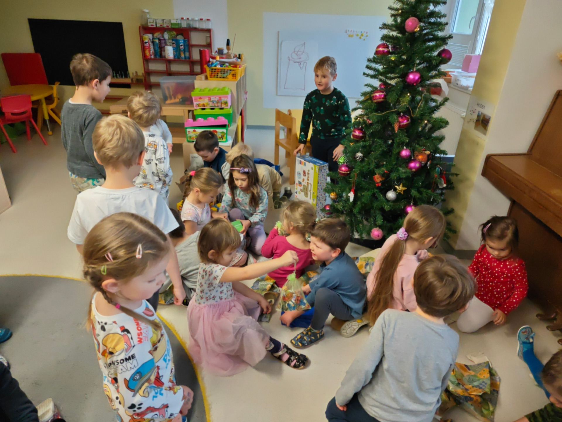 Do mateřské školy letos zavítal Ježíšek o něco dříve a to už 15. 12 a přinesl s sebou kouzelnou vánoční atmosféru. Děti s radostí a nadšením rozbalovaly krásné dárky, které jim vykouzlily úsměv na tváři. Celou školkou se nesla radost, smích a pocit opravdových Vánoc.