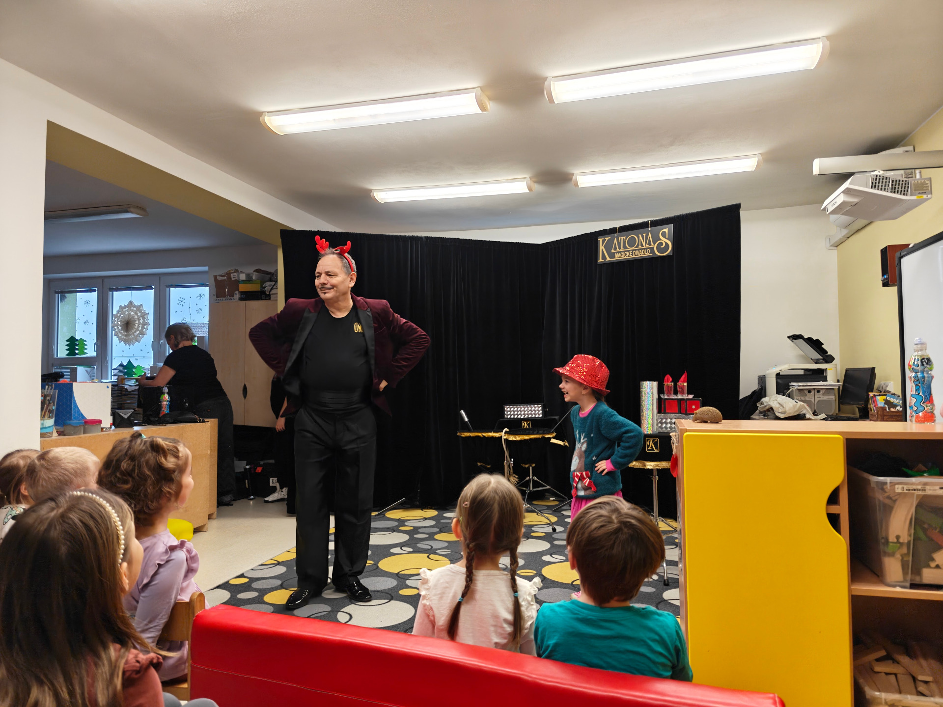 Po roce nás opět navštívil náš starý známí kouzelník Katonas, se svým kouzelnickým představením. Některé kouzelnické triky si vyzkoušely i děti. Představení bylo velmi zábavné a dětem se moc líbilo.